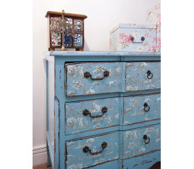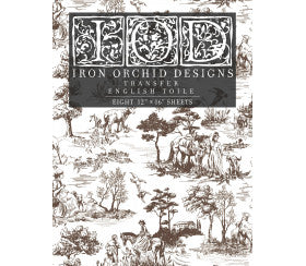 A beautiful and classic Toile Transfer by Iron Orchid designs. There are 8 sheets in total. You choose the back ground colour and you have a toile of your choice.