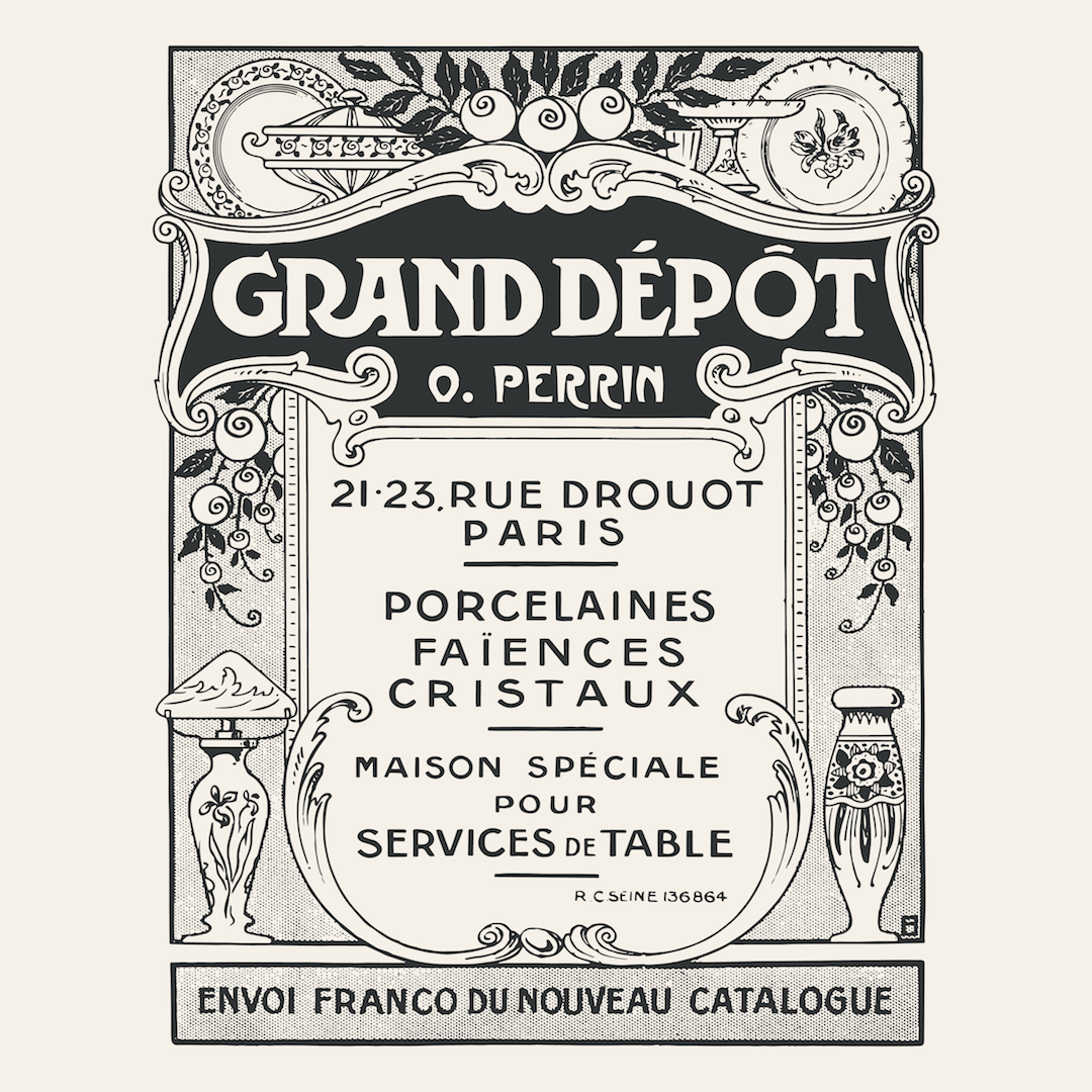 Flea Markets have existed since antiquity. The first "puces" were set up in paris at the Beginning of the 20th Century and numerous shops made it possible to find antique objects such as Gallé vases illustrated in this vintage advertising.